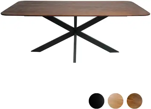 Stel een vraag over Tafel rechthoek afgerond mango houten blad met spinpoot