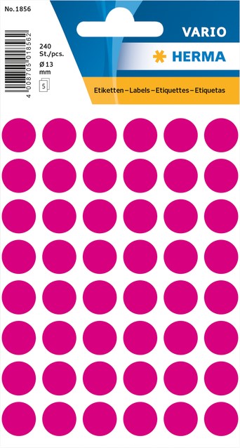 Stel een vraag over Etiket HERMA 1856 rond 13mm roze 240 etiketten