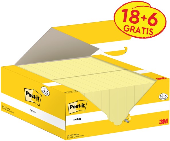 Post-it Notes, ft 38 x 51 mm, geel, blok van 100 vel, pak van 16 + 4 gratis