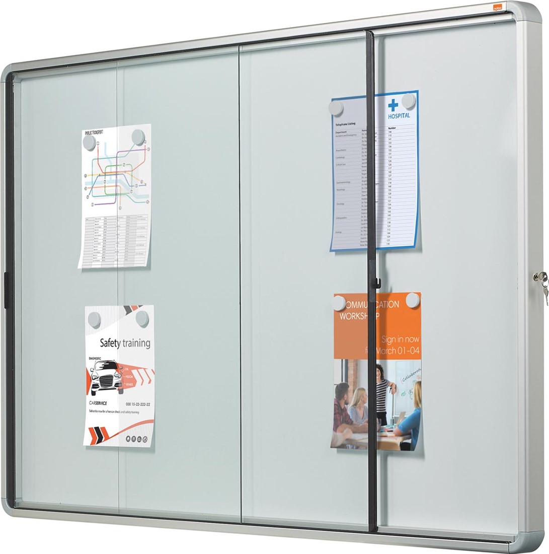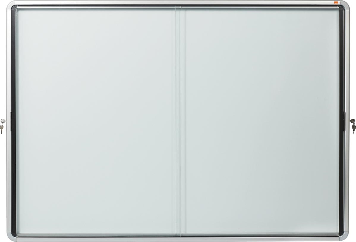 Artikelomschrijving Nobo Premium Plus binnenvitrine, schuifdeuren met hoekslot, magnetisch, 18 x A4