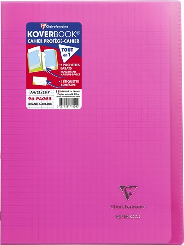 Artikelomschrijving Clairefontaine schrift Koverbook voor ft A4, 96 bladzijden, kaft in PP, seyès, geassorteerde kleuren
