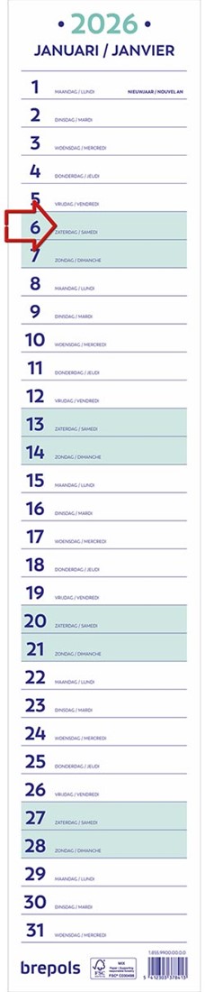 Specificaties Brepols maand lintkalender, 2026