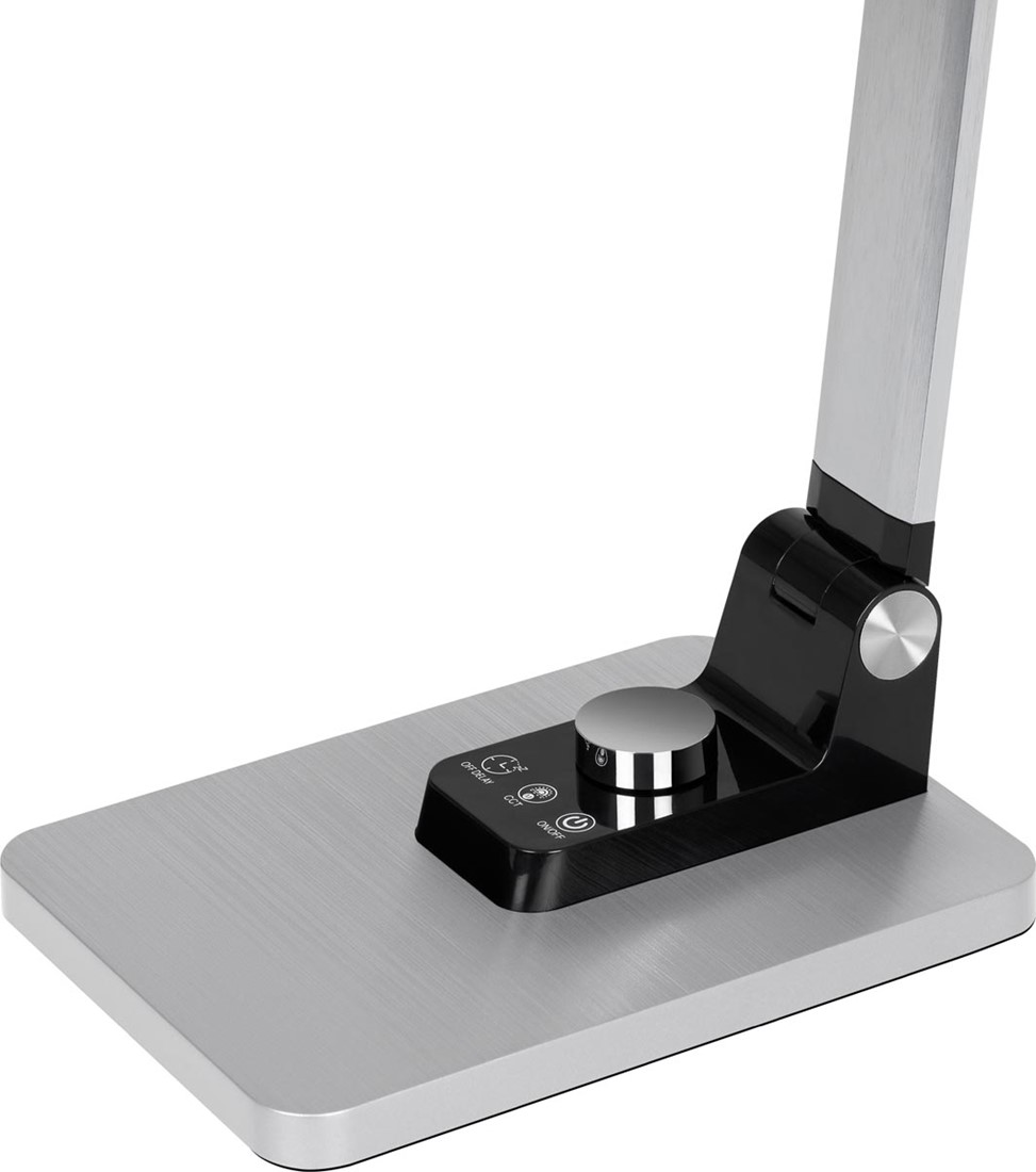 Type lamp: LED 9 W Levensduur: 30 000 uur Helderheid: 450 lumen Lichtsterkte bij 40 cm afstand: 870 lux Energieklasse E (spectrum A tot G) 3 verschillende temperatuur licht: tussen 3000 en 5800 Kelvin Uit ABS-kunststof en aluminium Automatische uitschakelfunctie na 90 sec Armatuurkop +/-80° draaibaar en 180° kantelbaar Dimbaar Geheugenfunctie LED's kunnen niet vervangen worden