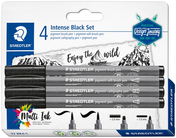Stel een vraag over Brushpen Staedtler PigmentArts Intens zwart set à 4 schrijfbreedtes