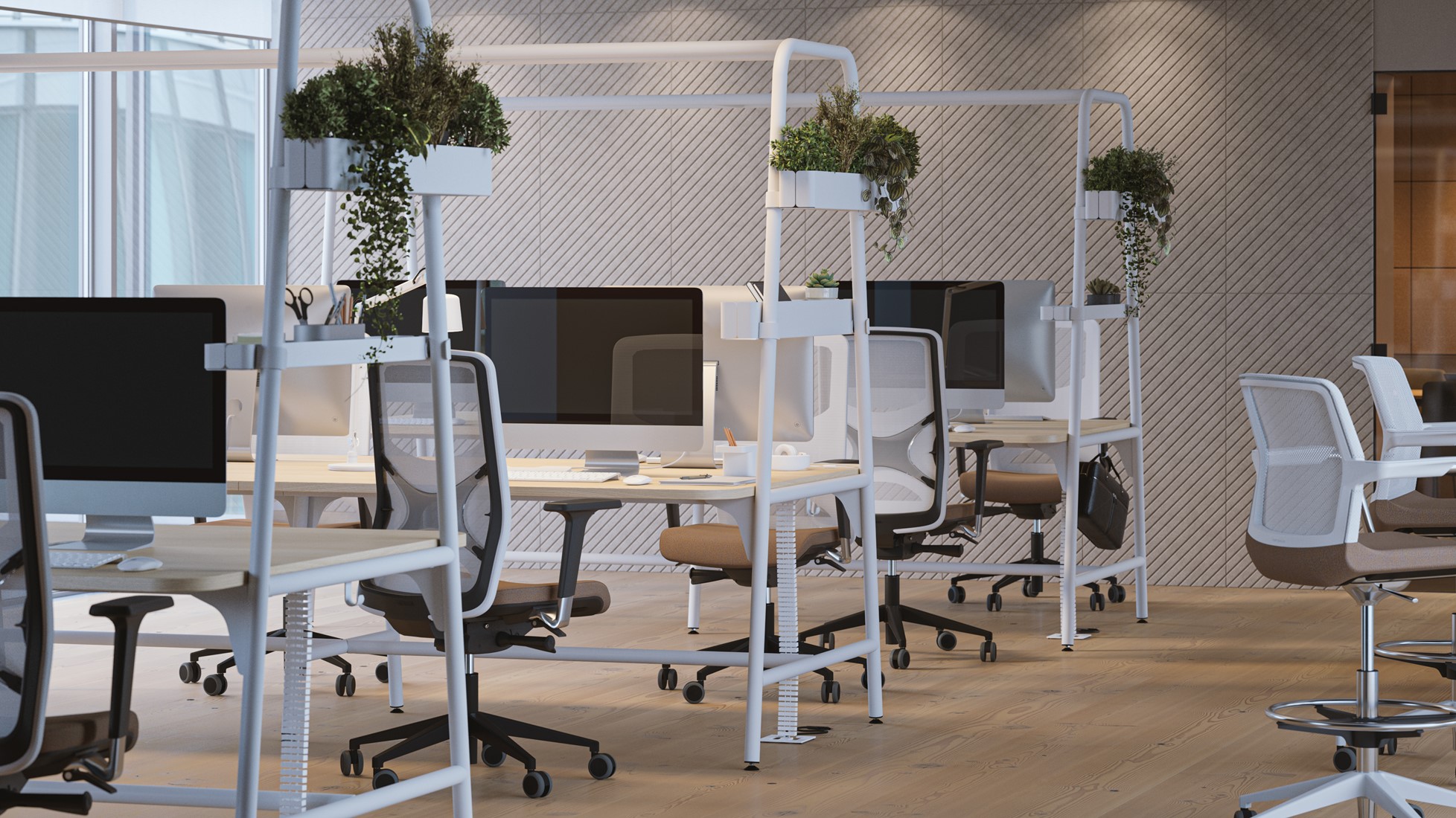 HPL Whiteboard, planten en plantenbak, monitorhouders, stroompunten en bakjes, zijn niet inbegrepen.