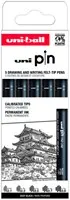 Artikelomschrijving Fineliner Uni-ball Pin ASP008 set à 5 breedtes zwart