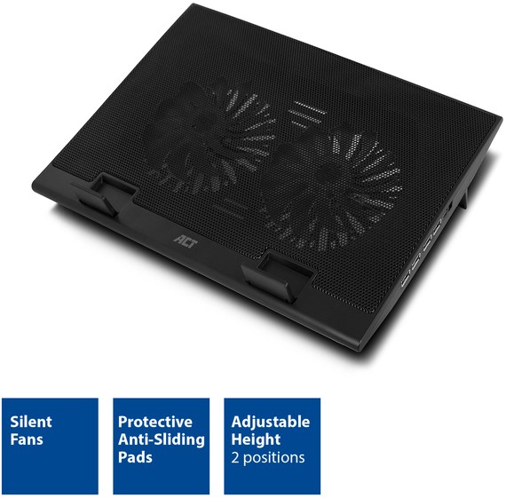 Specificaties Laptopstandaard ACT 2 standen met ventilator 4-p hub