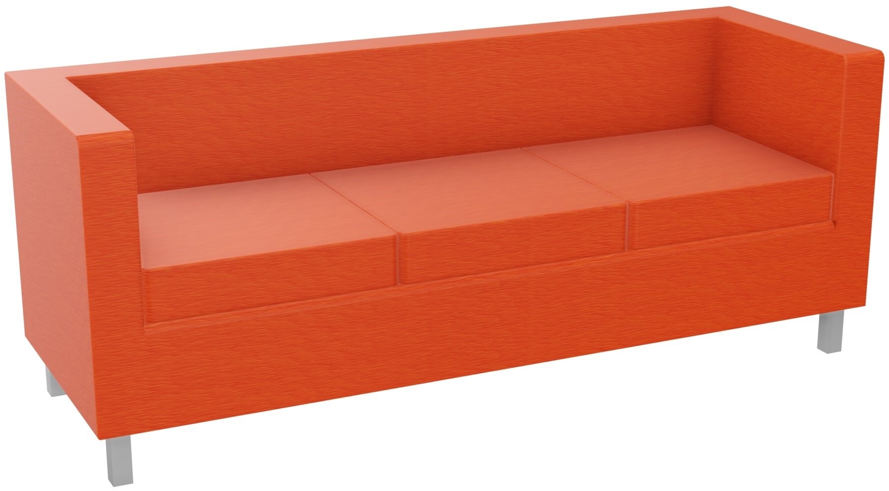 Een receptiebank in een strak design. Met de vierkante hoeken en de strakke verchroomde poten past deze bank perfect in een moderne ontvangstruimte, kantoor of receptie. Bekleed de 3 persoons bank in vele moderne en frisse kleuren en kies voor stof, kunstleder of echt leder. Wanneer de stoel is uitgevoerd in stof, is deze brandwerend.