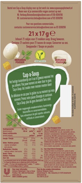 Stel een vraag over Cup-a-Soup Unox champignon crème 21x175ml