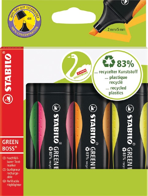 Stel een vraag over Markeerstift STABILO GREEN BOSS 6070/4 assorti etui à 4 stuks