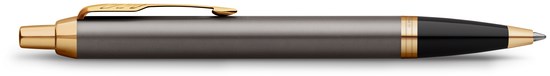 De grijze en gouden afwerking van de Parker IM in combinatie met de luxueuze styling positioneren hem als een toonbeeld van de verfijning van Parker. De ingewikkelde afwerking en de goudkleurige PVD-coating van de clip en messing afwerking combineren perfect met de roestvrijstalen dop en houder, die prachtig zijn afgewerkt in een klassieke grijze lak.