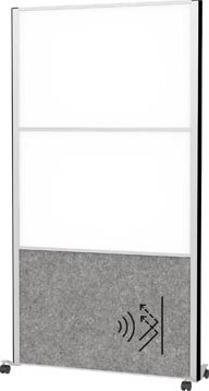 Samenstelling: 2 x whiteboard, 1 x akoestisch donkergrijs paneel , frame zilver, mobiel