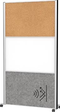 Samenstelling: 1 x whiteboard, 1 x kurk paneel, akoestisch donkergrijs paneel , frame zilver, mobiel
