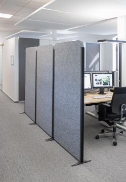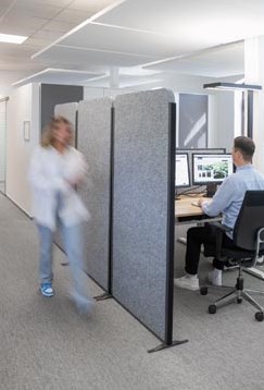 Modulaire, vrijstaande akoestische scheidingswand met sterke geluidsabsorptie. Milieu- en allergievriendelijk. Hoogwaardige materialen: gecoat aluminiumprofiel en vormvast akoestisch vlies (4000 g/m², 4 cm dik). Flexibel te koppelen zonder openingen door fleece aan beide zijden en klittenbandverbinding. 5 jaar garantie. L x b x h: 100 x 35 x 182 cm.