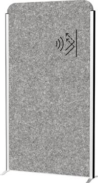 Modulaire, vrijstaande akoestische scheidingswand met sterke geluidsabsorptie. Milieu- en allergievriendelijk. Hoogwaardige materialen: gecoat aluminiumprofiel en vormvast akoestisch vlies (4000 g/m², 4 cm dik). Flexibel te koppelen zonder openingen door fleece aan beide zijden en klittenbandverbinding. 5 jaar garantie. L x b x h: 100 x 35 x 182 cm.