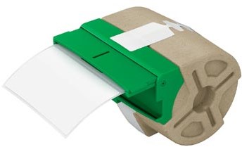 labelcartridge met gestanste adreslabels. Cartridge gemaakt van gerecyclede papierpulp. Klik-in-cartridge voor eenvoudige omschakeling. Eenvoudig los te trekken. Permanent klevend papier.