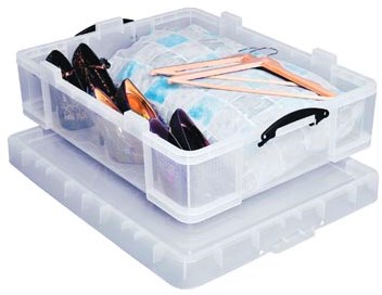 De Really Useful Box is een duurzame opbergbox van 70 liter gemaakt van sterke, transparante kunststof. Deze box biedt optimale bescherming voor de inhoud en is ideaal voor het opbergen van media zoals vinyl, DVD's en CD's. Dankzij het afsluitbare deksel met twee stevige clips blijft alles stof- en vuilvrij. De box is perfect stapelbaar, zowel met als zonder deksel, en heeft een volledige platte en versterkte bodem voor extra stabiliteit. Dit maakt de opbergbox veelzijdig voor gebruik op kantoor, thuis, in de garage en in de werkplaats.