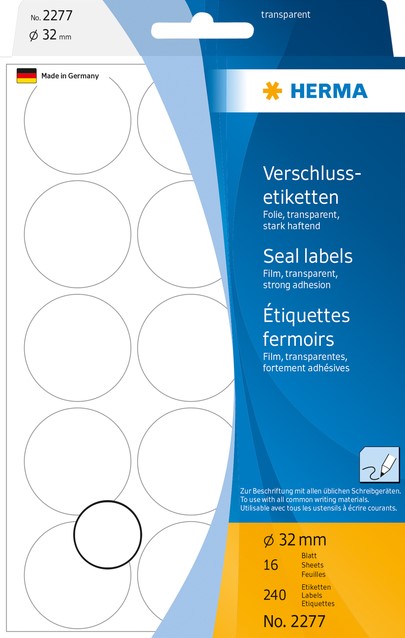 Accessoires Etiket HERMA 2277 rond 32mm transparant 240stuks