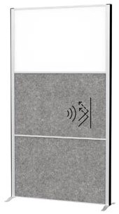 Samenstelling: 1 x whiteboard, 2 x akoestisch donkergrijs paneel , frame zilver, met voet