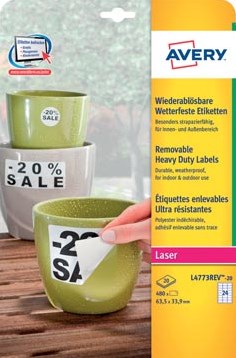 Avery afneembare weerbestendige etiketten 63,5 x 33,9 mm wit doos van 480 etiketten