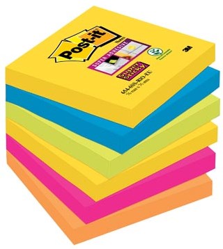 Post-it Super Sticky Notes zijn de ideale oplossing voor iedereen die zijn berichten wil laten opvallen. Deze zelfklevende notities zijn sterker en plakken langer dan reguliere notities. Voeg kleur toe aan je berichten met de geassorteerde kleuren asperge, saffraan, lavendelblauw, moerbei en kerrie. Of je nu een geheugensteuntje wilt achterlaten of een belangrijke boodschap wilt doorgeven, met Post-it Super Sticky Notes blijft je bericht altijd hangen. Een blok bevat 6 blokjes van 90 vel, waardoor je voldoende ruimte hebt voor al je notities.