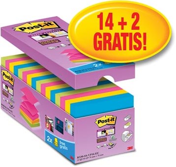 Value Pack Post-it Super Sticky Z-Notes 12 + 4 gratis geassorteerde kleuren