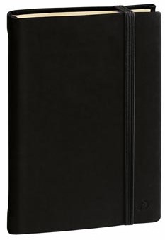 Ivoorkleurig papier van 85 g/m² 192 bladzijden (96 vel) Met opbergmapje en elastiek Ft 16 x 24 cm (A5) Gelijnd Kleur: zwart Certificaat: PEFC