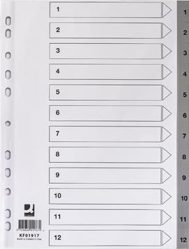 Tabbladen A4 PP 11-gaatsperforatie met indexblad set van 1-12 grijs Q-CONNECT
