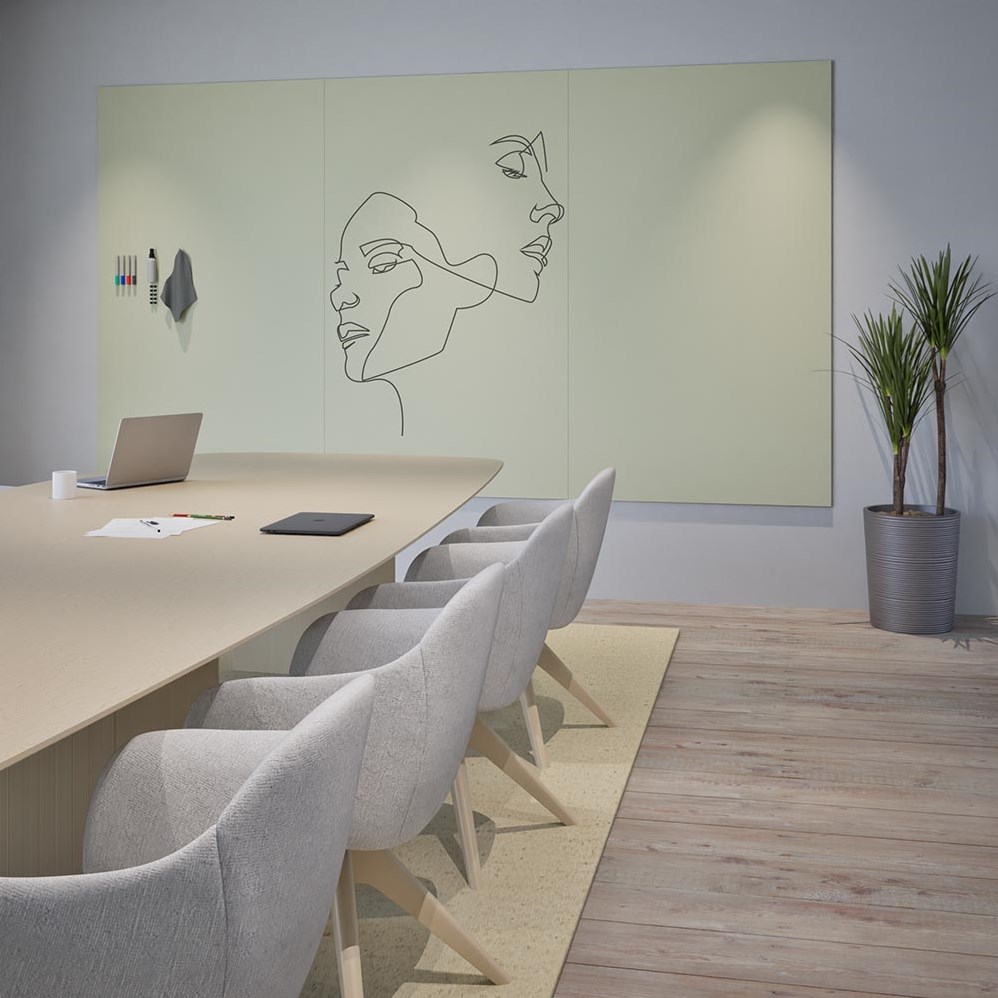 De standaarduitvoering in Satin Leaf – S203 combineert een subtiele groene tint met een matte uitstraling. Dit geeft de Sharp Wall een natuurlijke en eigentijdse look, geschikt voor moderne kantoren en creatieve studio’s.