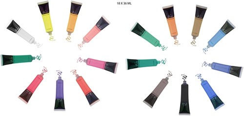 Deze uitgebreide set bevat 18 levendige kleuren, elk in handige 36 ml tubes. Perfect voor kunstenaars van alle niveaus, deze acrylverf biedt uitstekende dekking en mengbaarheid, zodat je eindeloze mogelijkheden hebt om je creativiteit te uiten. Of je nu schildert op canvas, papier of hout, deze verf droogt snel en heeft een prachtige, duurzame afwerking. De verpakking is FSC gecertificeerd.