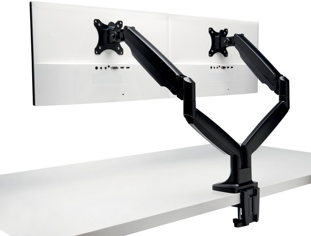 De robuuste bouw zorgt voor stabiliteit in elke positie. Dankzij de monitorbevestiging met gasveer kan je probleemloos de hoogte, diepte en hoek van jouw monitors aanpassen, van horizontaal tot verticaal.