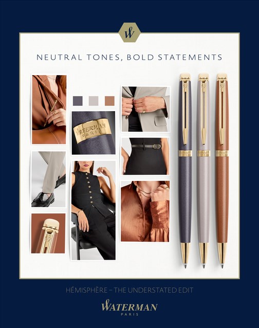 Een prachtig vervaardigde kenmerkende gespleten clip van Waterman en een lichtgouden coating maakt de stijlvolle look geschikt voor alle seizoenen.