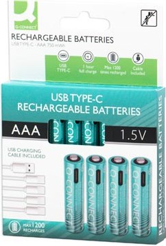 Oplaadbare batterijen AAA Q-CONNECT via USB-C 4 stuks