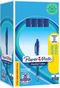 Papermate balpen Flexgrip Ultra retractable medium blauw 30+6 gratis
