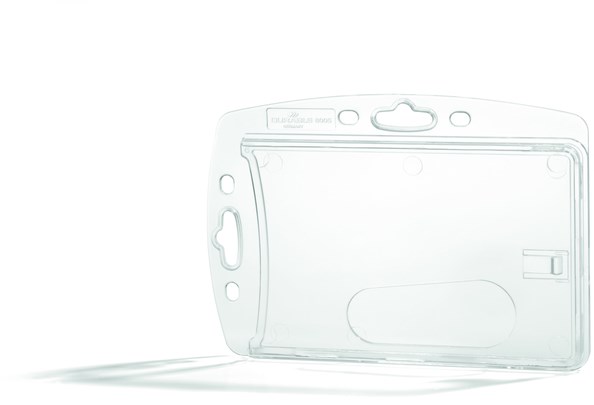 Deze badgehouder is perfect voor het veilig en duidelijk tonen van je identificatiepas. De gesloten uitvoering zorgt ervoor dat je kaart goed beschermd is. Het glasheldere materiaal maakt het eenvoudig om barcodes te scannen. Dankzij de duimuitsparing schuif je de kaart gemakkelijk uit de houder. Je kunt de badgehouder ook combineren met een afrolmechanisme, ketting of textielkoord. Deze houder is zowel in staand als liggend formaat te gebruiken. Ideaal voor evenementen, werkplekken of andere situaties waar je je naamkaartje wilt presenteren.