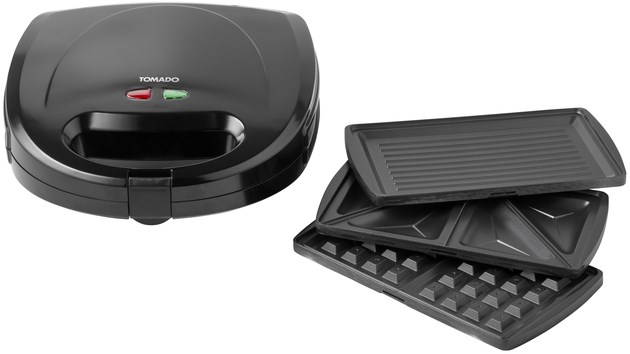 Ben je gek op wafels, tosti's of het grillen van vlees en groenten? Met de Tomado TGM2000B multigrill kan je alle kanten op. Hij is namelijk voorzien van 3 verwisselbare platen: wafelijzer, tosti-ijzer en contactgrill. De multigrill is voorzien van controlelampjes die jou laten weten wanneer de grill aanstaat en gebruiksklaar is. Om de tosti of wafel goed te klemmen tussen de platen heeft deze multigrill een vergrendelbare handgreep. Ook aan de stevigheid is gedacht; de antislip-voetjes zorgen ervoor dat de multigrill stevig op het aanrecht staat. Geen zin om af te wassen? Geen zorgen, alle grillplaten zijn vaatwasser bestendig.
