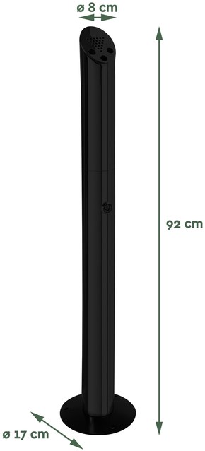 De zuil is zeer eenvoudig te legen. De staande asbak van BRASQ vangt de peuken op in het onderste gedeelte van de kolom. Door deze constructie, is er een beperkte zuurstof toevoer en doven de peuken snel. Dit komt de veiligheid van gebruiker en omgeving ten goede. Door het klepje onderaan met de sleutel te openen kun je de inhoud gemakkelijk legen. Sluit de asbak vervolgens weer met de sleutel. Tot slot, de asbak is geschikt voor iedereen die op een professionele wijze de sigarettenpeuken wilt opvangen, waardoor de werk- en leefomgeving opgeruimd en schoon blijft.