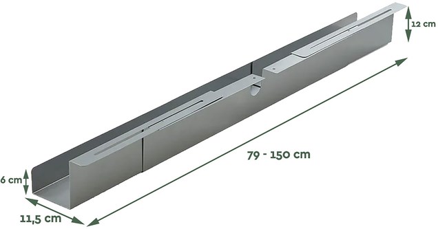 De universele kabelgoot, die slechts 2,3 kg weegt, wordt eenvoudig onder het bureaublad bevestigd, waardoor alle snoeren netjes weggewerkt zijn. De kabelgoot is gemaakt van hoogwaardig staal waardoor deze een sterk karakter heeft. Hierdoor kunnen ze een goed gewicht dragen van 10KG. De stalen goot zorgt er ook voor dat kabels niet oververhit kunnen raken. Met de directe ruimtebesparing kun je op een comfortabele manier aan het bureau zitten en creëer je een veilige en opgeruimde werkplek. Door zijn verstelbare eigenschap kun je de kabelgoot verlengen van 75-150cm. Deze is universeel te plaatsen onder ieder bureau.