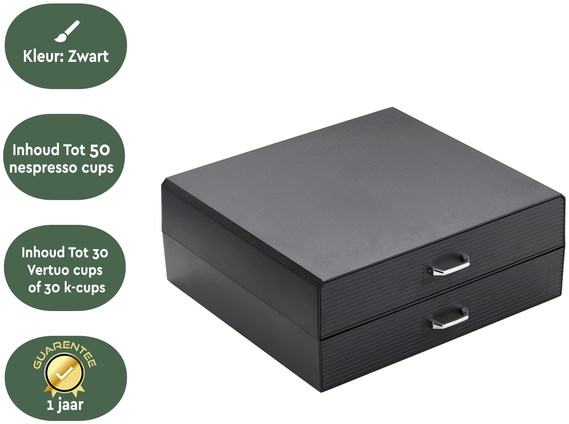 Geschikt voor: 50 cups Nespresso of 30 K-cup of Vertuo cups