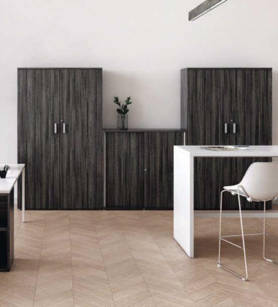 De Armand draaideurkasten zijn modulair, waardoor je eenvoudig meerdere kasten kunt combineren tot één uniforme kastenwand. Combineer hoge en lage kasten, schuifdeurkasten of vitrinekasten met glazen deuren om een georganiseerde en stijlvolle kantoorinrichting te creëren.