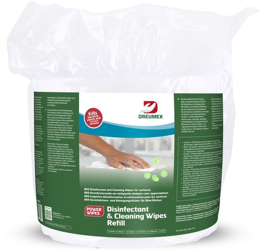 Desinfectiedoekjes Dreumex Disinfectant & Cleaning navulling 800 stuks wit