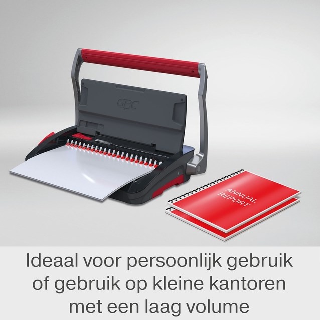 - Bindt maximaal 195 vellen (80 grams) met een 19 mm bindrug
