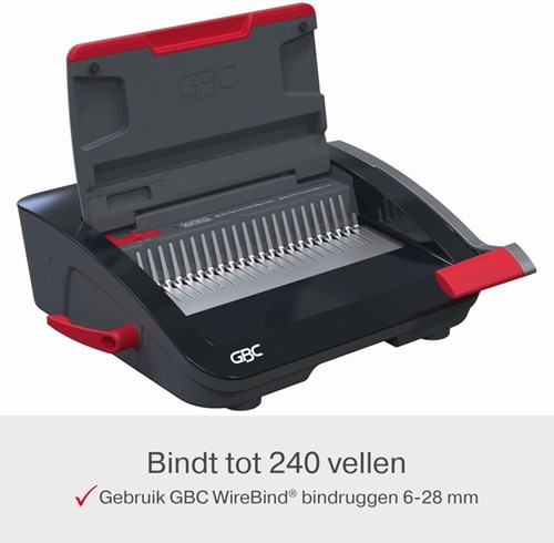 - Bindt tot 330 vellen (80 g/m²) met een 28 mm plastic bindrug