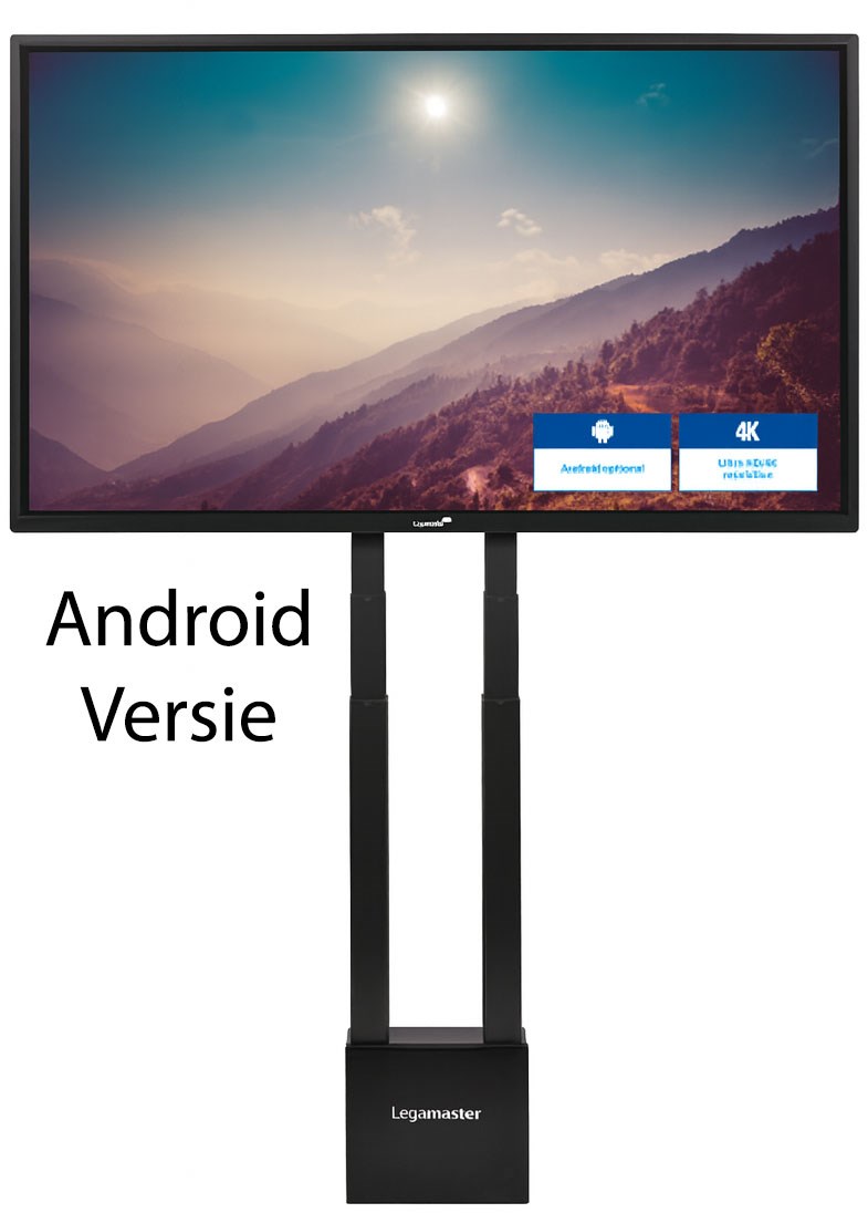 Dit Legamaster display screen 86 inch is ook los verkrijgbaar, met muurbeugel of als verrijdbare TV standaard.