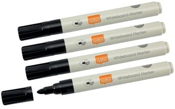 Nobo whiteboardmarker, ronde punt, schrijfbreedte 3 mm, etui van 4 stuks, zwart