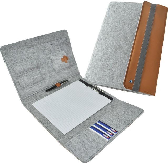 Schrijfmap DESQ A4 vilt met papierclip en elastiek sluiting grijs