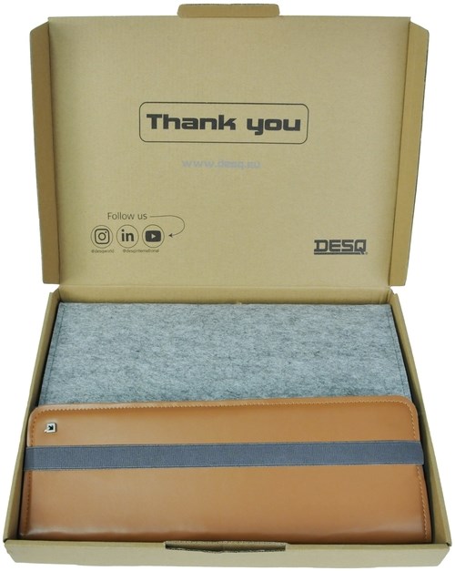 Deze New Generation conferentiemap is handgemaakt van sterk vilt en hoogwaardig kunstleer in Dutch Design. Met metalen clip om uw documenten veilig en geordend op te bergen.Bevat 12 opberg- en insteekvakken voor accessoires zoals pennen, visitekaartjes en documenten.  New Generation conferentiemappen combineren praktisch gebruik met een modern duo-tone design. Ze vallen op door het zachte vilt en het bruine kunstleer en dragen bij aan een eigentijdse uitstraling bij elke gelegenheid. Met de verscheidenheid aan goed doordachte vakken neem je jouw documenten overzichtelijk geordend mee naar iedere afspraak. De portfolio is uitgevoerd met een elastische bandsluiting. DESQ – Feel good at work.