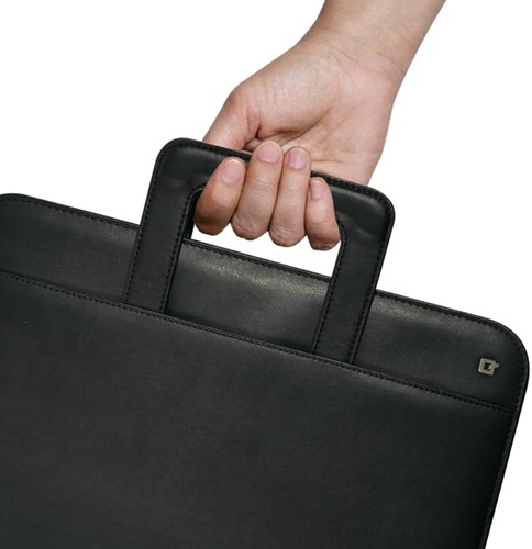Bevat 13 opberg- en insteekvakken, waarin accessoires zoals pennen, visitekaartjes en documenten opgeborgen kunnen worden. Eén vak is geschikt voor een tablet, maar kan ook gebruikt worden als opbergvak voor A4 documenten.