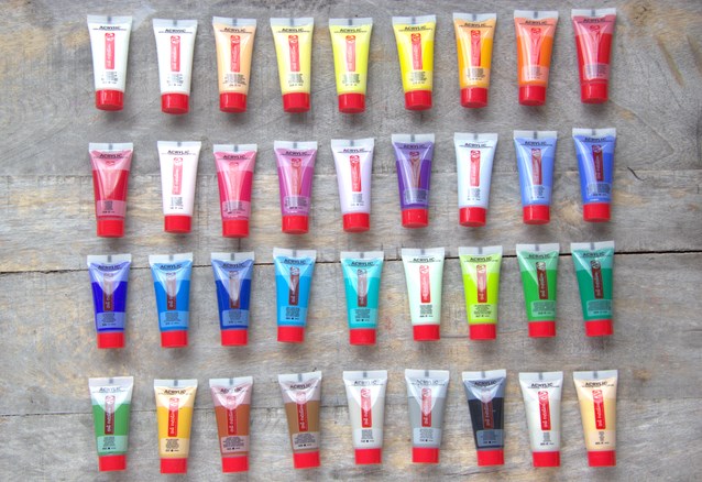 Acrylverfset van 36 x 12 ml tubes voor een goed basispalet aan kleuren om verschillende schilderijen mee te maken!