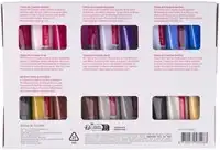 Inhoud: 36 x 12 ml tubes (105 Titaanwit 2x - 224 Napelsgeel Rood - 226 Pastelgeel - 267 Azogeel Citroen - 275 Primairgeel - 270 Azogeel Donker - 276 Azo-Oranje - 396 Naftolrood Medium - 318 Karmijn - 390 Pastelroze - 369 Primairmagenta - 567 Permanentroodviolet - 584 Pastellila - 568 Permanentblauwviolet - 580 Pastelblauw - 517 Koningsblauw - 512 Kobaltblauw Ultramarijn - 504 Ultramarijn - 572 Primaircyaan - 570 Phtaloblauw - 564 Briljantblauw - 661 Turkooisgroen - 666 Pastelgroen - 617 Geelgroen - 618 Permanentgroen Licht - 619 Permanentgroen Donker - 652 Bladgroen - 227 Gele Oker - 411 Sienna Gebrand - 409 Omber Gebrand - 718 Warmgrijs - 710 Neutraalgrijs - 701 Ivoorzwart - 800 Zilver - 801 Goud).